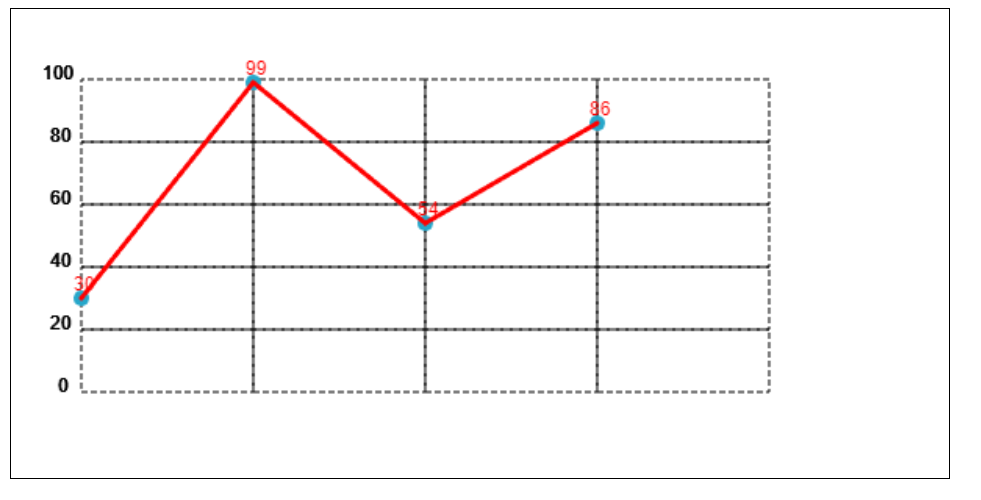 | <!DOCTYPE html> <html> <head> <meta charset="utf-8"/> </head> <style type="text/css"> #topo_graph { border: 1px solid black; } </style> <script type="application/javascript"> function drawGraph(value) { var canvas = document.getElementById('topo_graph'); if (canvas.getContext) { var ctx = canvas.getContext('2d'); var canvasWidth = 600; var canvasHeight = 300; ctx.clearRect(0,0, canvasWidth, canvasHeight); <!-- ctx.fillRect(25, 25, 100, 100); --> <!-- ctx.clearRect(45, 45, 60, 60); --> <!-- ctx.strokeRect(50, 50, 50, 50); --> <!-- ctx.beginPath(); --> <!-- ctx.arc(95, 50, 40, 0, 2 * Math.PI); --> <!-- ctx.fillStyle = "rgba(0, 0, 200, 0.5)"; --> <!-- ctx.stroke(); --> <!-- ctx.closePath(); --> <!-- ctx.beginPath(); --> <!-- ctx.font = "30px Arial"; --> <!-- ctx.fillText("Hello World", 10, 50); --> <!-- ctx.closePath(); --> var margin_top = 45; var margin_left = 45; ctx.beginPath(); ctx.font = "12px Arial"; ctx.setLineDash( [4,2] ); ctx.lineDashOffset = 2; for(var i=0; i<4; i++) { ctx.fillText("100", margin_left - 25, margin_top+(40*0)); ctx.strokeRect(margin_left + (110*i), margin_top+(40*0), 110, 40); ctx.fillText("80", margin_left - 20, margin_top+(40*1)); ctx.strokeRect(margin_left + (110*i), margin_top+(40*1), 110, 40); ctx.fillText("60", margin_left - 20, margin_top+(40*2)); ctx.strokeRect(margin_left + (110*i), margin_top+(40*2), 110, 40); ctx.fillText("40", margin_left - 20, margin_top+(40*3)); ctx.strokeRect(margin_left + (110*i), margin_top+(40*3), 110, 40); ctx.fillText("20", margin_left - 20, margin_top+(40*4)); ctx.strokeRect(margin_left + (110*i), margin_top+(40*4), 110, 40); ctx.fillText("0", margin_left - 15, margin_top+(40*5)); } ctx.closePath(); /* 0 100 40 80 80 60 120 40 160 20 200 0 0 200-0 100 200-100 */ var minValue = 0; var maxValue = 100; ctx.fillStyle = "red"; ctx.fillText(String(value), margin_left-5, margin_top + ((maxValue - value) * 2) - 5); drawCircle(ctx, margin_left, margin_top + ((maxValue - value) * 2), true, "#26A7CA", 5); ctx.fillStyle = "red"; ctx.fillText(String(99), margin_left + (110*1)-5, margin_top + ((maxValue - 99) * 2) - 5); drawCircle(ctx, margin_left + (110*1), margin_top + ((maxValue - 99) * 2), true, "#26A7CA", 5); ctx.fillStyle = "red"; ctx.fillText(String(54), margin_left + (110*2)-5, margin_top + ((maxValue - 54) * 2) - 5); drawCircle(ctx, margin_left + (110*2), margin_top + ((maxValue - 54) * 2), true, "#26A7CA", 5); ctx.fillStyle = "red"; ctx.fillText(String(86), margin_left + (110*3)-5, margin_top + ((maxValue - 86) * 2) - 5); drawCircle(ctx, margin_left + (110*3), margin_top + ((maxValue - 86) * 2), true, "#26A7CA", 5); drawLine(ctx, margin_left, margin_top + ((maxValue - value) * 2), margin_left + (110*1), margin_top + ((maxValue - 99) * 2), '#ff0000'); drawLine(ctx, margin_left + (110*1), margin_top + ((maxValue - 99) * 2), margin_left + (110*2), margin_top + ((maxValue - 54) * 2), '#ff0000'); drawLine(ctx, margin_left + (110*2), margin_top + ((maxValue - 54) * 2), margin_left + (110*3), margin_top + ((maxValue - 86) * 2), '#ff0000'); /* ctx.beginPath(); ctx.arc(100, 75, 50, 0, 2 * Math.PI); ctx.strokeStyle = "#FF0000"; ctx.stroke(); ctx.beginPath(); ctx.arc(210, 75, 50, 0, 2 * Math.PI); ctx.strokeStyle = "blue"; ctx.stroke(); ctx.closePath(); var centreX =100; var centreY = 150; ctx.beginPath(); ctx.fillStyle = "#16AA55"; //green ctx.moveTo(centreX, centreY); ctx.arc(centreX, centreY,100, Math.PI * 0.01, Math.PI * 1, false); ctx.lineTo(centreX, centreY); ctx.fill(); ctx.beginPath(); ctx.fillStyle = "#26A7CA"; ctx.moveTo(centreX, centreY); ctx.arc(centreX, centreY, 100, Math.PI * 1, Math.PI * 2.01, false); ctx.lineTo(centreX, centreY); ctx.fill(); */ } } function drawCircle(ctx, centerX, centerY, isFill, color, radius) { ctx.beginPath(); if(isFill) ctx.fillStyle = color; else ctx.strokeStyle = color; ctx.moveTo(centerX, centerY); ctx.arc(centerX, centerY, radius, Math.PI * 0.01, Math.PI * 2, false); ctx.fill(); } function drawLine(ctx, sx, sy, ex, ey, color) { ctx.beginPath(); ctx.strokeStyle = color; ctx.lineWidth=3; ctx.lineCap = 'round'; ctx.lineJoin = 'bevel'; ctx.moveTo(sx, sy); ctx.lineTo(ex, ey); ctx.stroke(); } </script> <body onload="drawGraph(30);"> <canvas id="topo_graph" width="600" height="300"></canvas> </body> </html> |